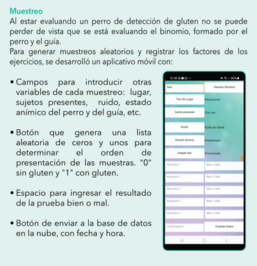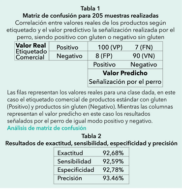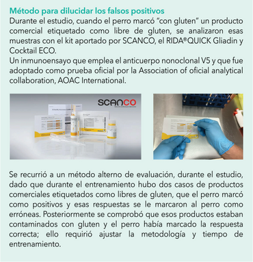 El perro se entrenó para detectar hasta 0.002%. de gluten, el equivalente a 20 partes por millón, acorde al estándar del Codex europeo y de la FDA, para etiquetar alimentos como libres de gluten.